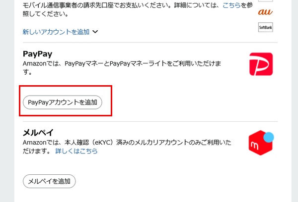 Amazonの支払い方法にPayPayが追加されました。