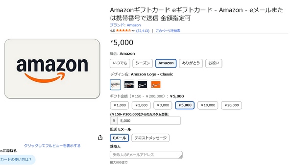 次にAmazonのサイトに移動し、PayPay残高カードでAmazonギフトカードを購入します。