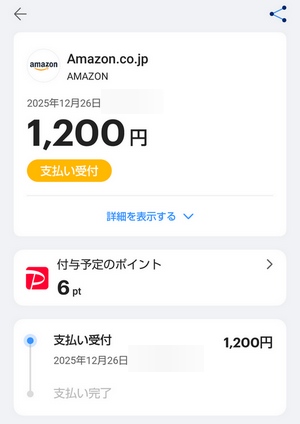支払い完了になると、PayPayステップの実績としてカウントされ、PayPayポイントの付与も行われます。